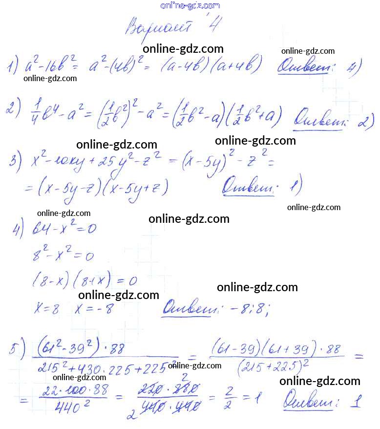 Готовые домашние задания по Алгебре за 7 класс Самостоятельные и контрольные работы Глазков, Гаиашвили УМК 2019 - СР-25 Самостоятельные работы вариант 4