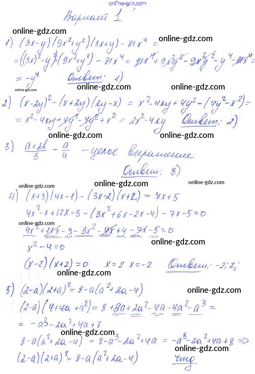 Готовые домашние задания по Алгебре за 7 класс Самостоятельные и контрольные работы Глазков, Гаиашвили УМК 2019 - СР-27 Самостоятельные работы вариант 1