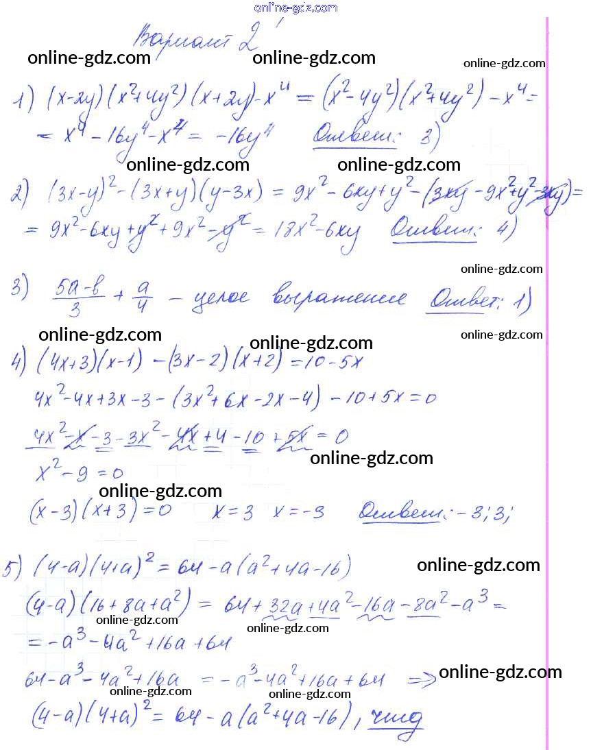 Готовые домашние задания по Алгебре за 7 класс Самостоятельные и контрольные работы Глазков, Гаиашвили УМК 2019 - СР-27 Самостоятельные работы вариант 2
