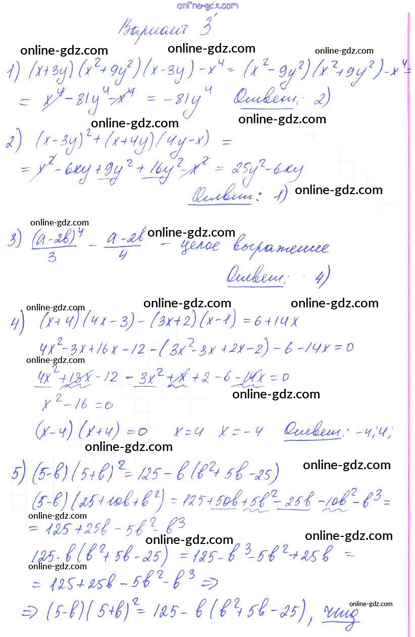 Готовые домашние задания по Алгебре за 7 класс Самостоятельные и контрольные работы Глазков, Гаиашвили УМК 2019 - СР-27 Самостоятельные работы вариант 3