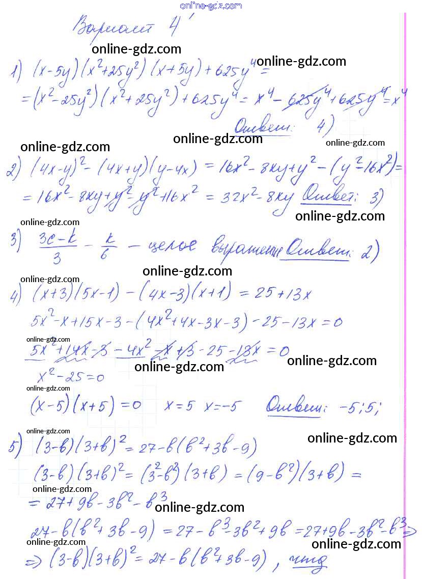 Готовые домашние задания по Алгебре за 7 класс Самостоятельные и контрольные работы Глазков, Гаиашвили УМК 2019 - СР-27 Самостоятельные работы вариант 4