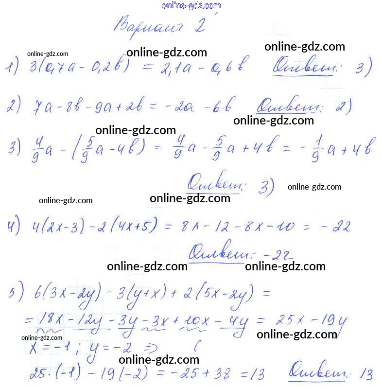 Готовые домашние задания по Алгебре за 7 класс Самостоятельные и контрольные работы Глазков, Гаиашвили УМК 2019 - СР-3 Самостоятельные работы вариант 2