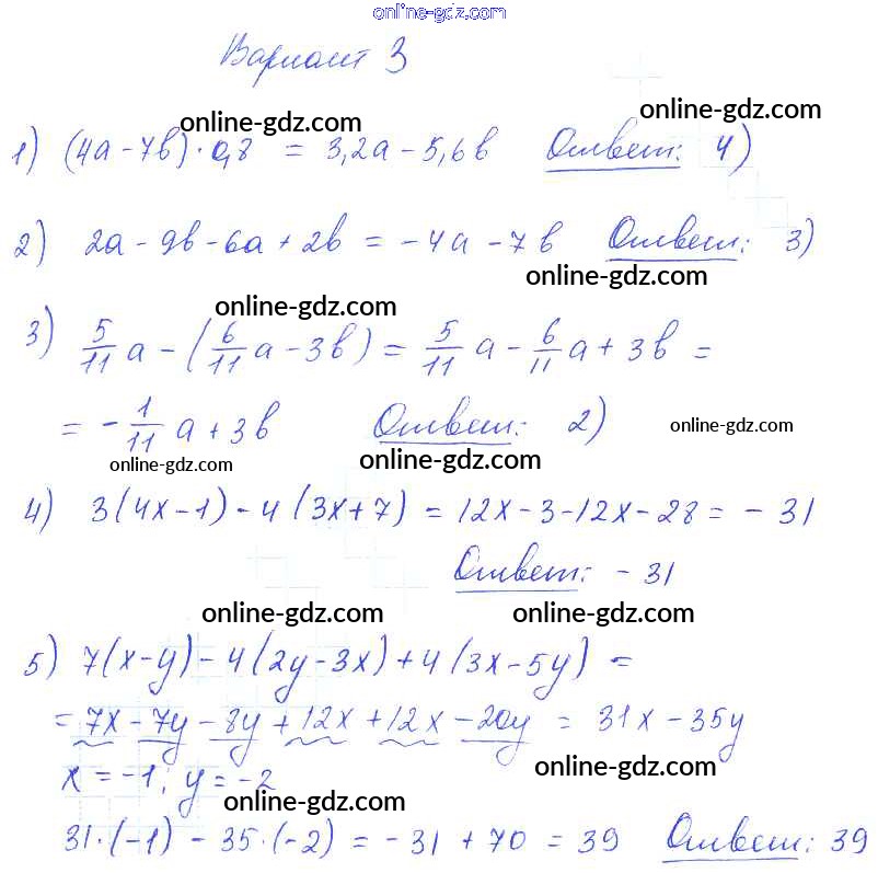 Готовые домашние задания по Алгебре за 7 класс Самостоятельные и контрольные работы Глазков, Гаиашвили УМК 2019 - СР-3 Самостоятельные работы вариант 3