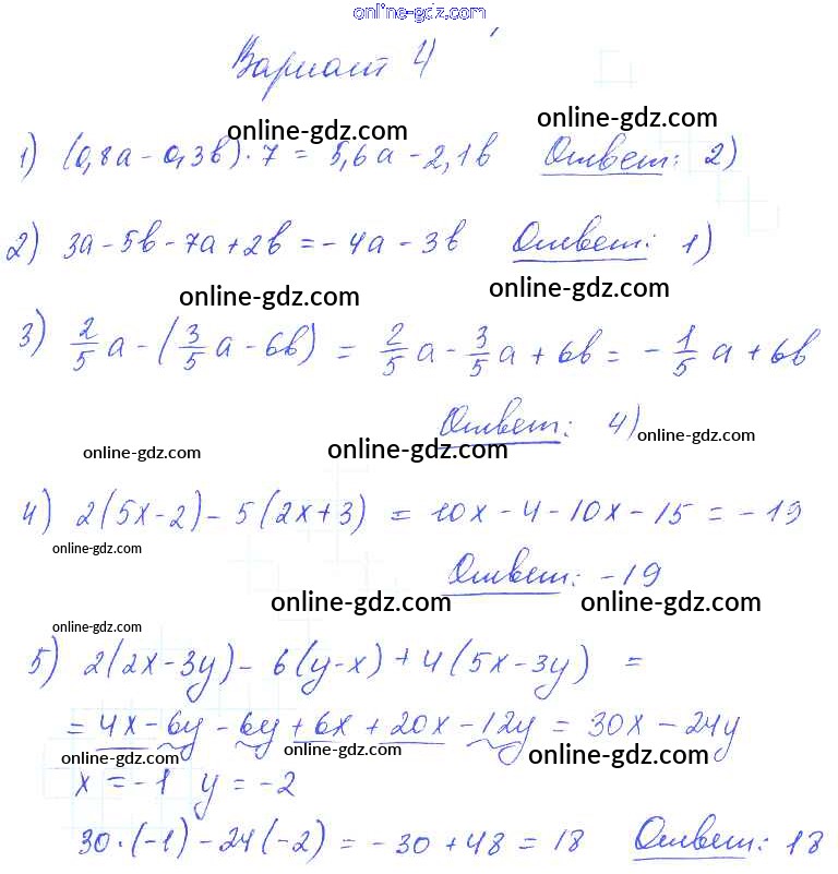 Готовые домашние задания по Алгебре за 7 класс Самостоятельные и контрольные работы Глазков, Гаиашвили УМК 2019 - СР-3 Самостоятельные работы вариант 4
