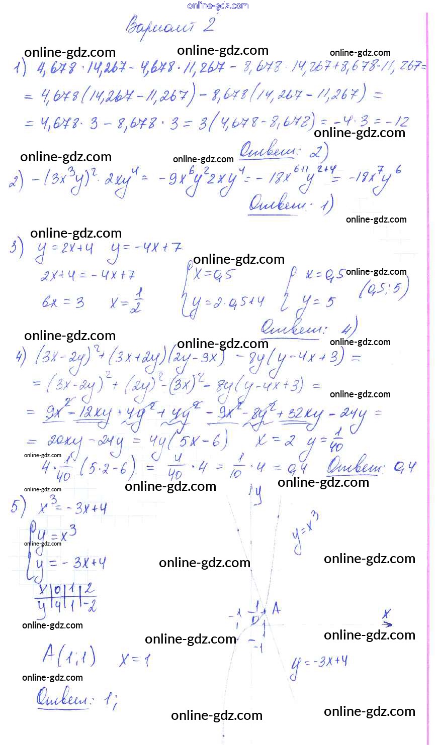 Готовые домашние задания по Алгебре за 7 класс Самостоятельные и контрольные работы Глазков, Гаиашвили УМК 2019 - СР-33 Самостоятельные работы вариант 2