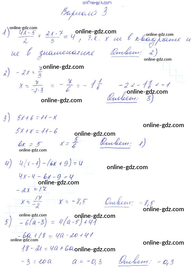 Готовые домашние задания по Алгебре за 7 класс Самостоятельные и контрольные работы Глазков, Гаиашвили УМК 2019 - СР-5 Самостоятельные работы вариант 3