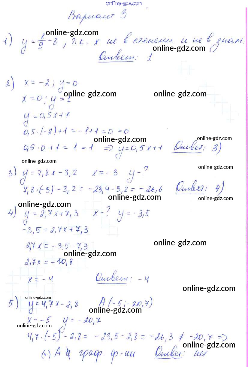 Готовые домашние задания по Алгебре за 7 класс Самостоятельные и контрольные работы Глазков, Гаиашвили УМК 2019 - СР-9 Самостоятельные работы вариант 3