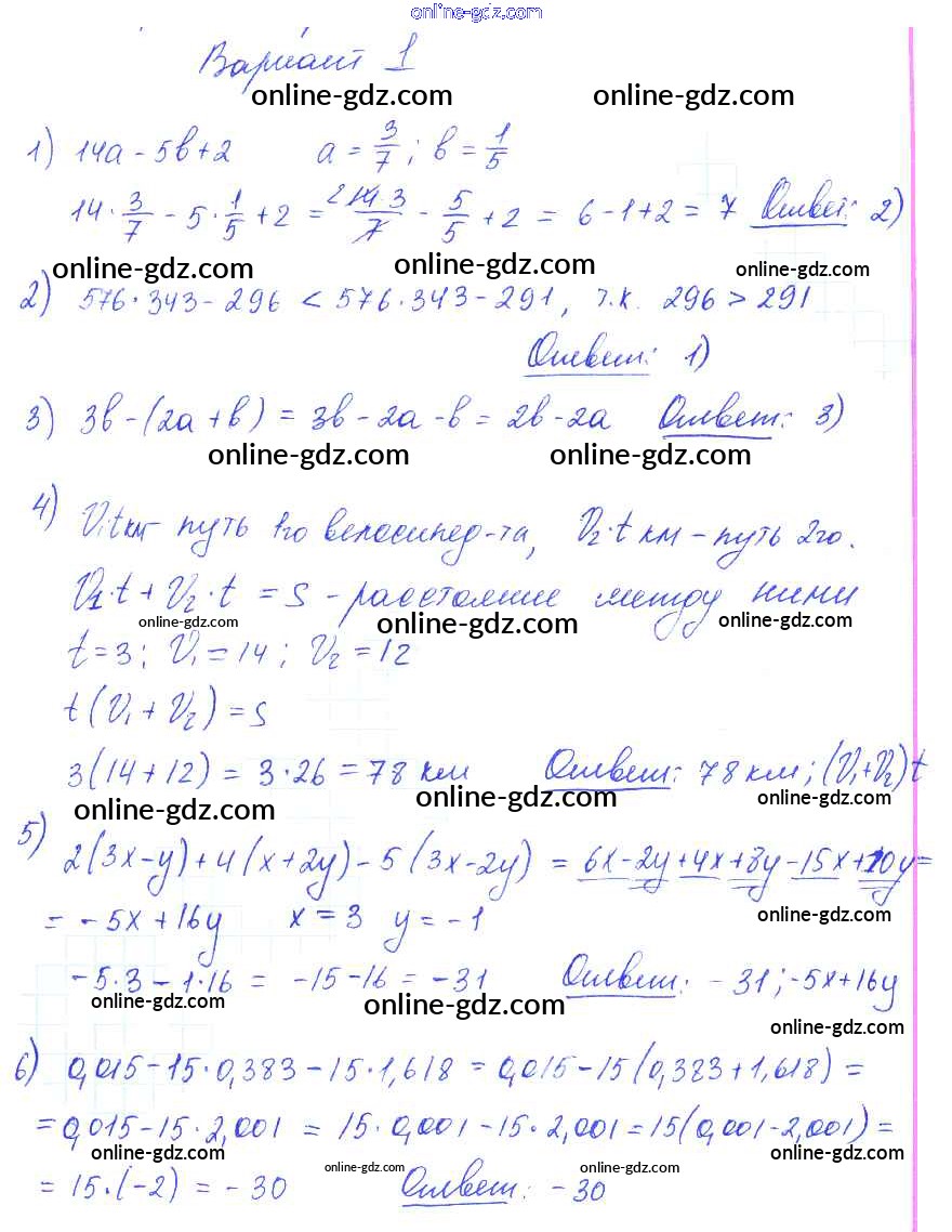 Готовые домашние задания по Алгебре за 7 класс Самостоятельные и контрольные работы Глазков, Гаиашвили УМК 2019 - КР-1 (варианты) Контрольные работы вариант 1
