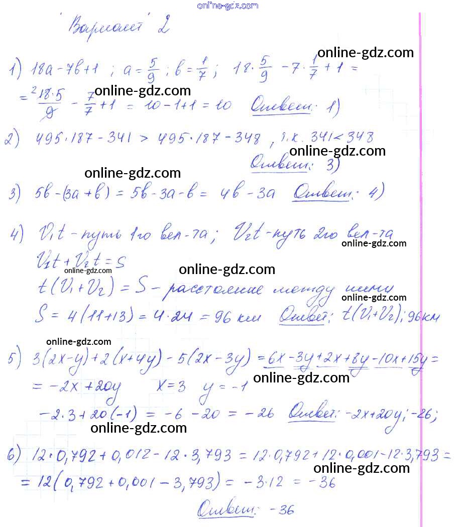 Готовые домашние задания по Алгебре за 7 класс Самостоятельные и контрольные работы Глазков, Гаиашвили УМК 2019 - КР-1 (варианты) Контрольные работы вариант 2