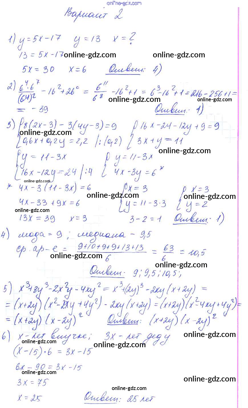 Готовые домашние задания по Алгебре за 7 класс Самостоятельные и контрольные работы Глазков, Гаиашвили УМК 2019 - КР-10 Контрольные работы вариант 2