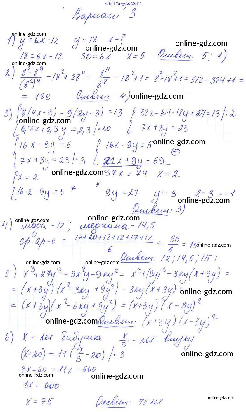 Готовые домашние задания по Алгебре за 7 класс Самостоятельные и контрольные работы Глазков, Гаиашвили УМК 2019 - КР-10 Контрольные работы вариант 3