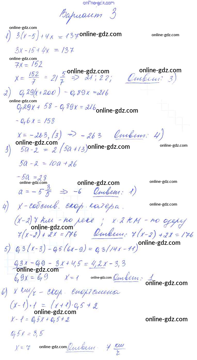Готовые домашние задания по Алгебре за 7 класс Самостоятельные и контрольные работы Глазков, Гаиашвили УМК 2019 - КР-2 Контрольные работы вариант 3