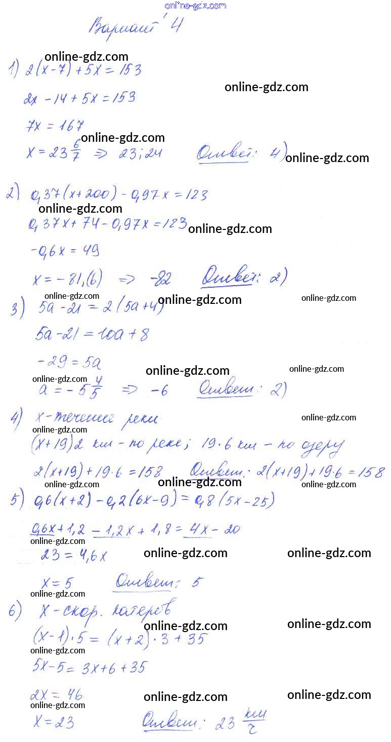 Готовые домашние задания по Алгебре за 7 класс Самостоятельные и контрольные работы Глазков, Гаиашвили УМК 2019 - КР-2 Контрольные работы вариант 4