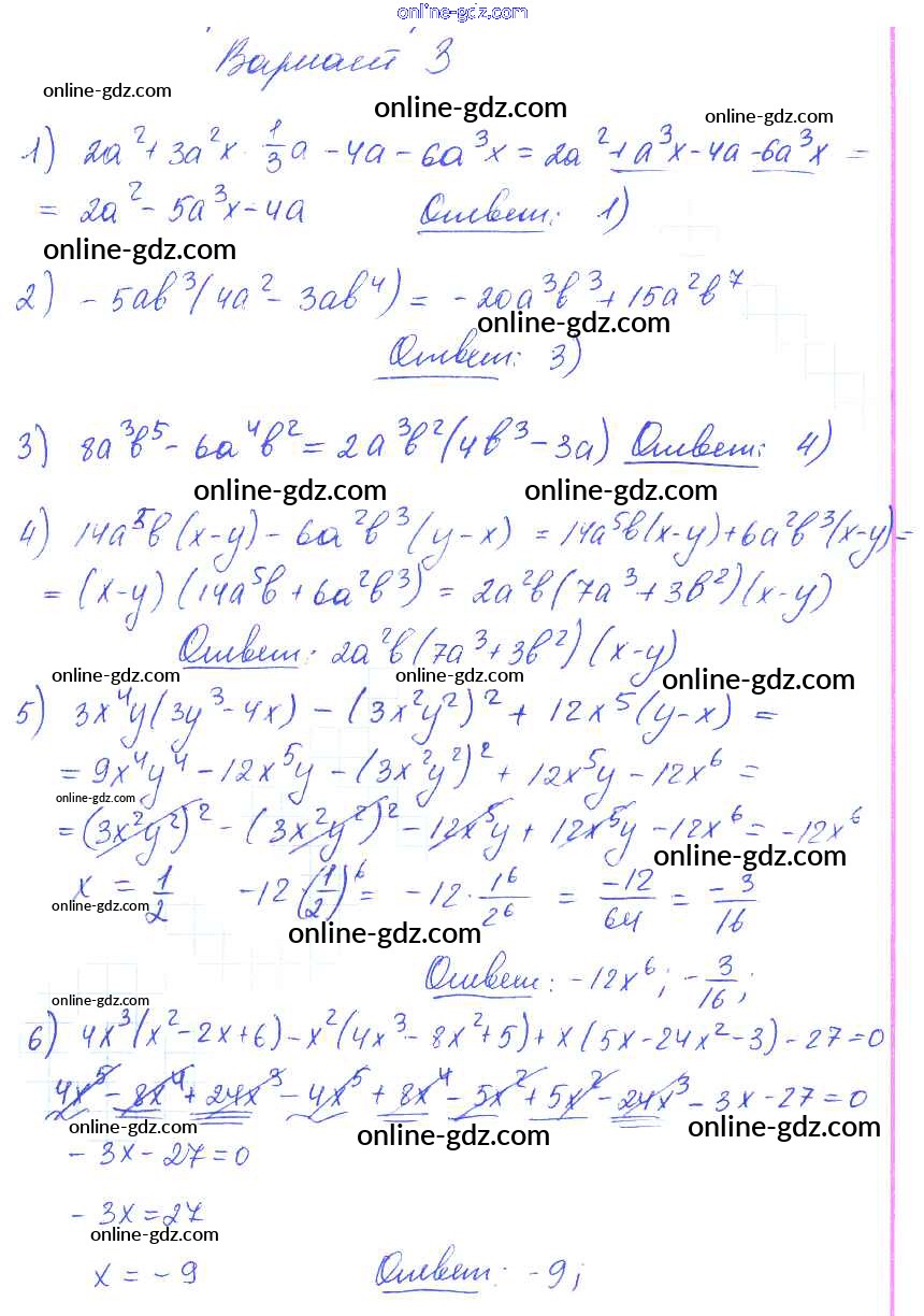 Готовые домашние задания по Алгебре за 7 класс Самостоятельные и контрольные работы Глазков, Гаиашвили УМК 2019 - КР-5 Контрольные работы вариант 3