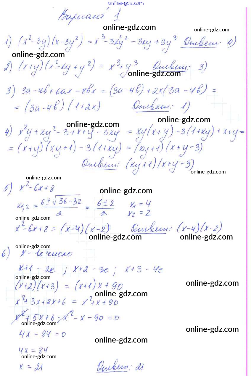 Готовые домашние задания по Алгебре за 7 класс Самостоятельные и контрольные работы Глазков, Гаиашвили УМК 2019 - КР-6 Контрольные работы вариант 1