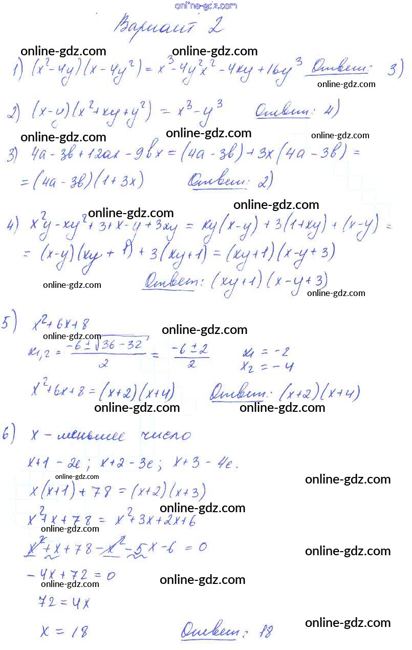 Готовые домашние задания по Алгебре за 7 класс Самостоятельные и контрольные работы Глазков, Гаиашвили УМК 2019 - КР-6 Контрольные работы вариант 2