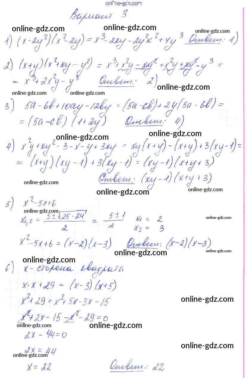 Готовые домашние задания по Алгебре за 7 класс Самостоятельные и контрольные работы Глазков, Гаиашвили УМК 2019 - КР-6 Контрольные работы вариант 3