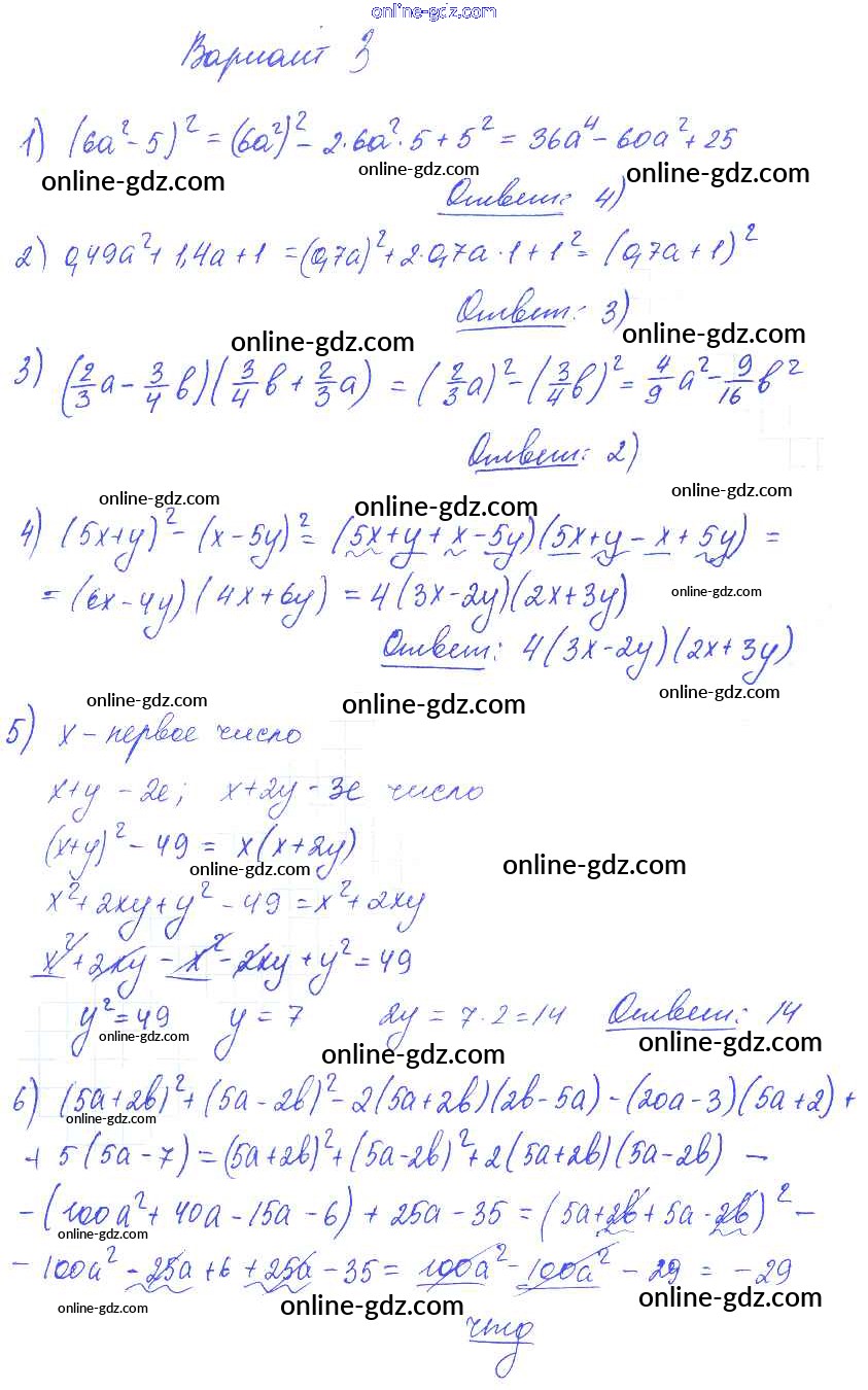 Готовые домашние задания по Алгебре за 7 класс Самостоятельные и контрольные работы Глазков, Гаиашвили УМК 2019 - КР-7 Контрольные работы вариант 3