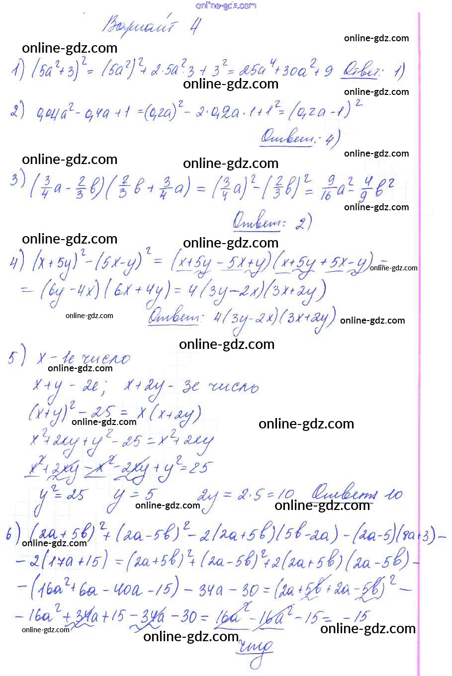 Готовые домашние задания по Алгебре за 7 класс Самостоятельные и контрольные работы Глазков, Гаиашвили УМК 2019 - КР-7 Контрольные работы вариант 4