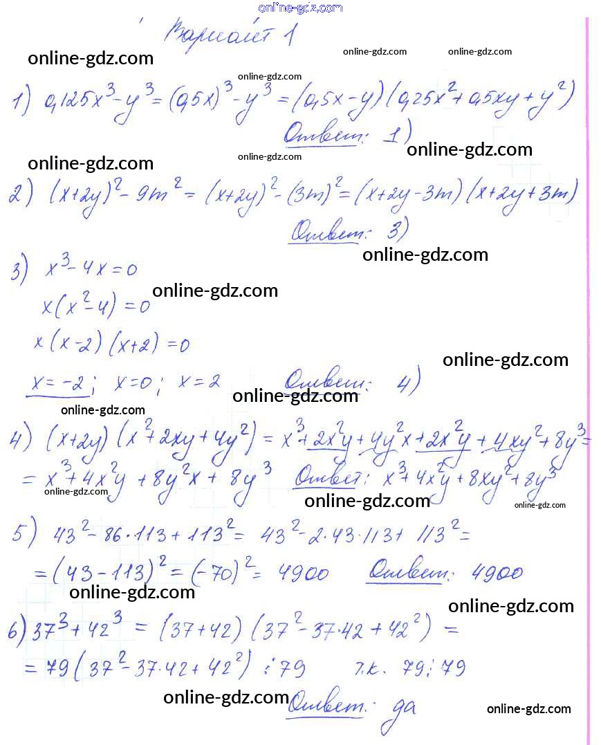 Готовые домашние задания по Алгебре за 7 класс Самостоятельные и контрольные работы Глазков, Гаиашвили УМК 2019 - КР-8 Контрольные работы вариант 1