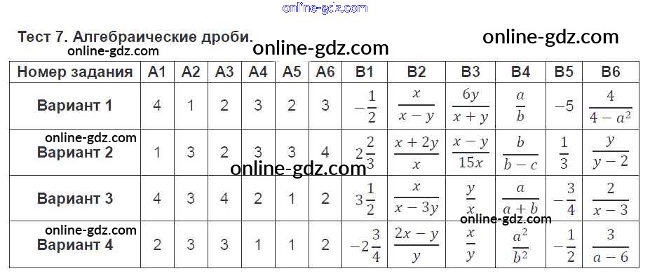 Готовые домашние задания по Алгебре за 7 класс Тематические тесты Чулков МГУ - школе 2017 - Тесты 7