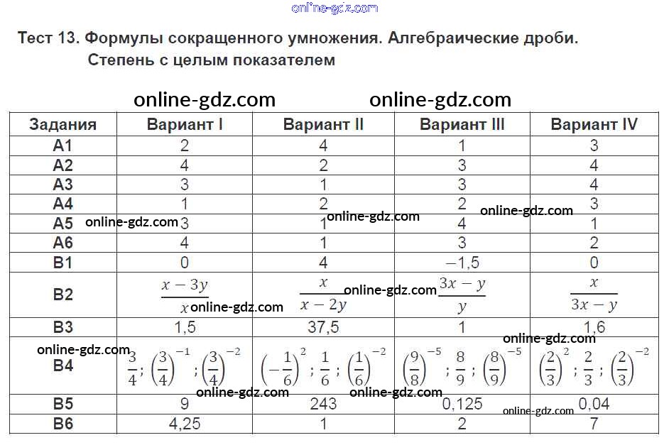 Готовые домашние задания по Алгебре за 7 класс Тесты Журавлев, Ермаков УМК 2013 - Тесты 13