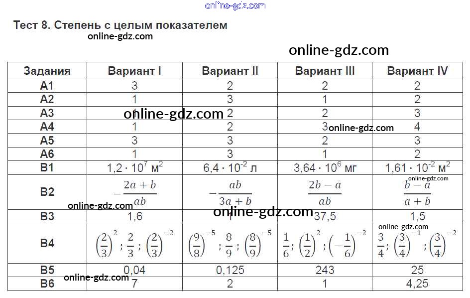 Готовые домашние задания по Алгебре за 7 класс Тесты Журавлев, Ермаков УМК 2013 - Тесты 8