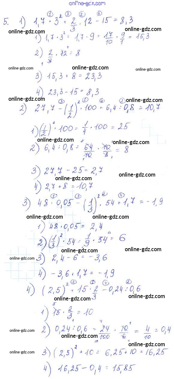 Готовые домашние задания по Алгебре за 7 класс Учебник Алимов, Колягин 2014 - §1. Числовые выражения Глава 1. Алгебраические выражения 5