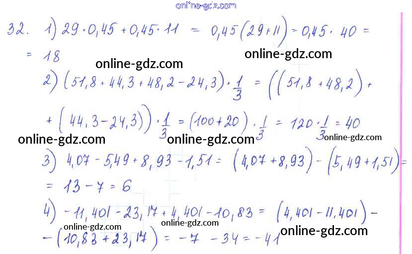 Готовые домашние задания по Алгебре за 7 класс Учебник Алимов, Колягин 2014 - §4. Свойства арифметических действий Глава 1. Алгебраические выражения 32