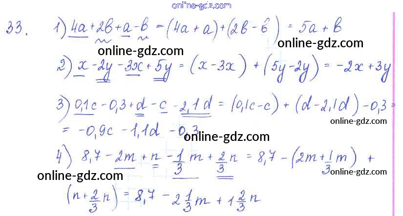 Готовые домашние задания по Алгебре за 7 класс Учебник Алимов, Колягин 2014 - §4. Свойства арифметических действий Глава 1. Алгебраические выражения 33