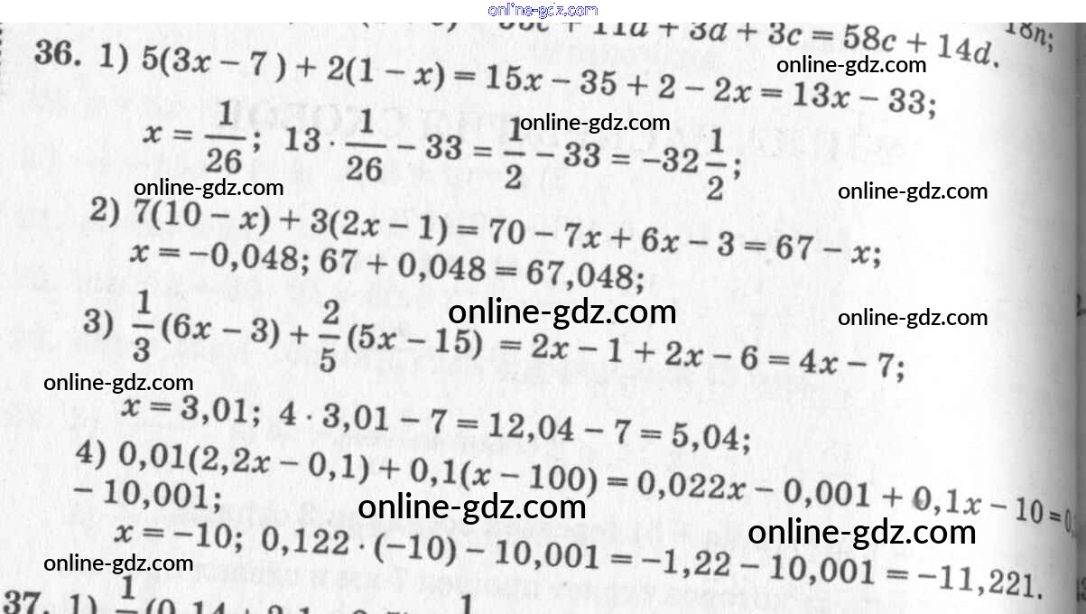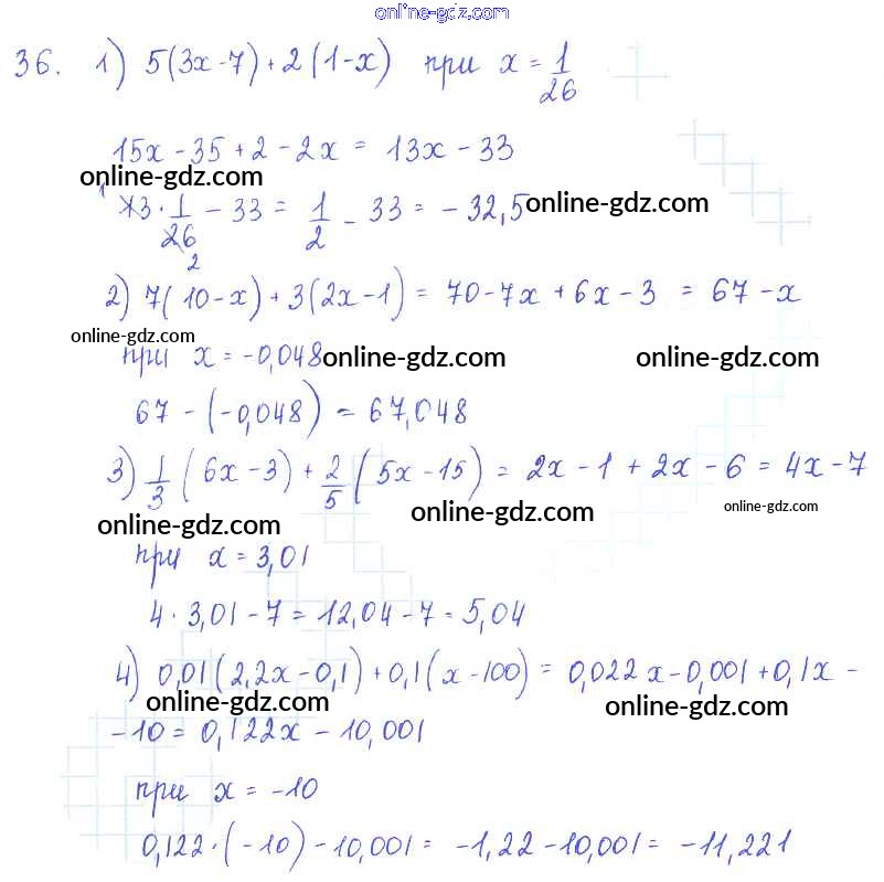 Готовые домашние задания по Алгебре за 7 класс Учебник Алимов, Колягин 2014 - §4. Свойства арифметических действий Глава 1. Алгебраические выражения 36
