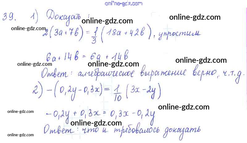 Готовые домашние задания по Алгебре за 7 класс Учебник Алимов, Колягин 2014 - §4. Свойства арифметических действий Глава 1. Алгебраические выражения 39