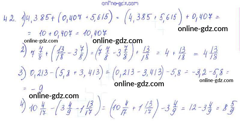 Готовые домашние задания по Алгебре за 7 класс Учебник Алимов, Колягин 2014 - §5. Правила раскрытия скобок Глава 1. Алгебраические выражения 42