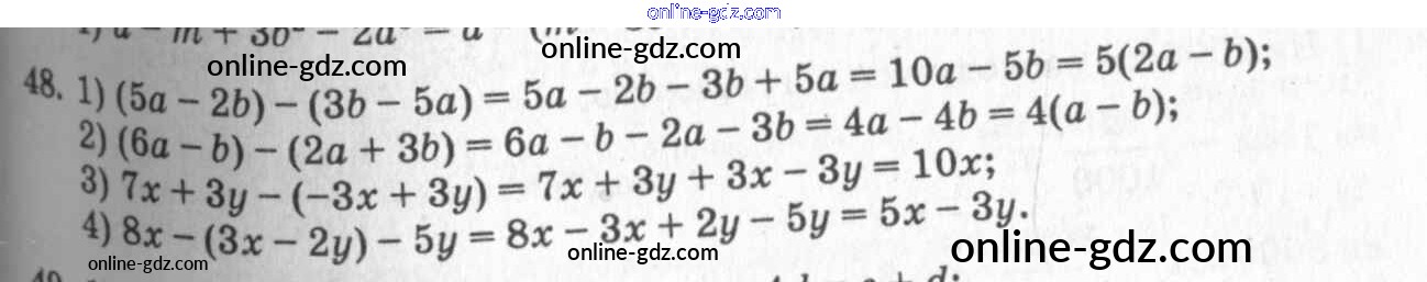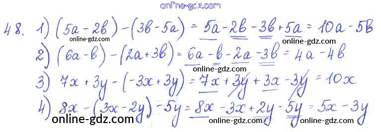 Готовые домашние задания по Алгебре за 7 класс Учебник Алимов, Колягин 2014 - §5. Правила раскрытия скобок Глава 1. Алгебраические выражения 48