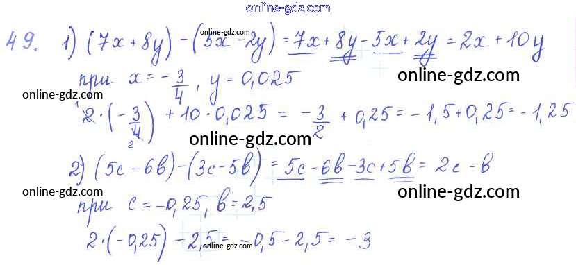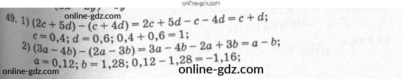 Готовые домашние задания по Алгебре за 7 класс Учебник Алимов, Колягин 2014 - §5. Правила раскрытия скобок Глава 1. Алгебраические выражения 49