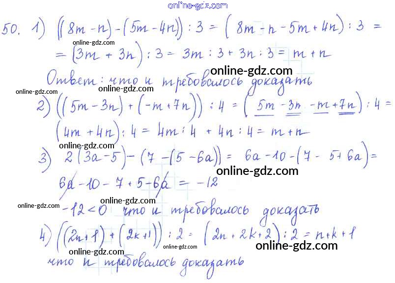 Готовые домашние задания по Алгебре за 7 класс Учебник Алимов, Колягин 2014 - §5. Правила раскрытия скобок Глава 1. Алгебраические выражения 50