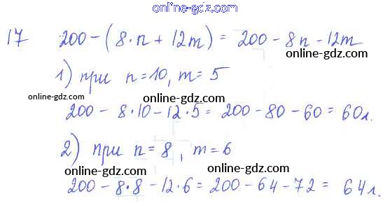 Готовые домашние задания по Алгебре за 7 класс Учебник Алимов, Колягин 2014 - Практические и прикладные задачи Глава 1. Алгебраические выражения 17