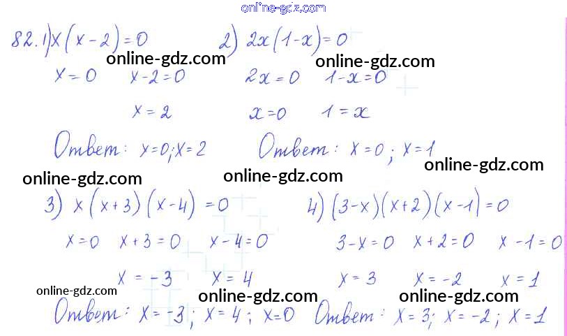 Готовые домашние задания по Алгебре за 7 класс Учебник Алимов, Колягин 2014 - §6. Уравнение и его корни Глава 2. Уравнения с одним неизвестным 82