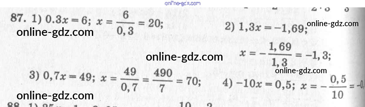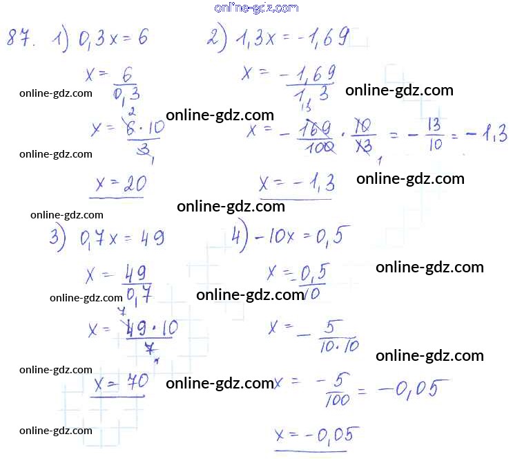 Готовые домашние задания по Алгебре за 7 класс Учебник Алимов, Колягин 2014 - §7. Решение уравнений с одним неизвестным, сводящихся к линейным Глава 2. Уравнения с одним неизвестным 87