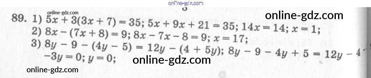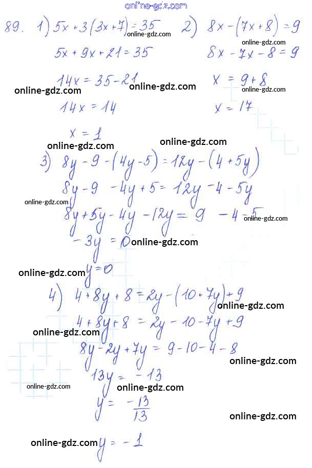 Готовые домашние задания по Алгебре за 7 класс Учебник Алимов, Колягин 2014 - §7. Решение уравнений с одним неизвестным, сводящихся к линейным Глава 2. Уравнения с одним неизвестным 89