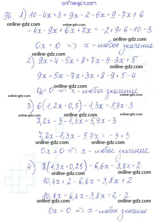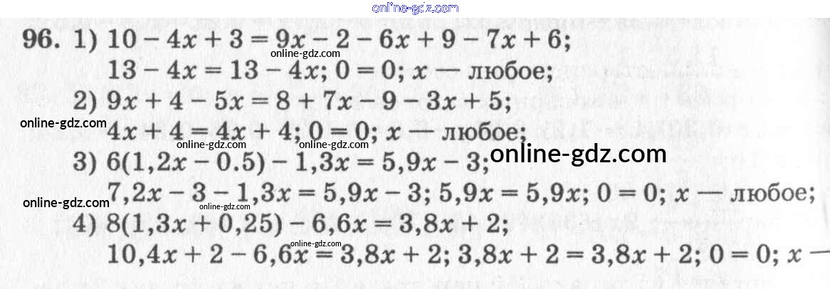 Готовые домашние задания по Алгебре за 7 класс Учебник Алимов, Колягин 2014 - §7. Решение уравнений с одним неизвестным, сводящихся к линейным Глава 2. Уравнения с одним неизвестным 96