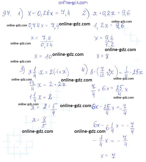 Готовые домашние задания по Алгебре за 7 класс Учебник Алимов, Колягин 2014 - §7. Решение уравнений с одним неизвестным, сводящихся к линейным Глава 2. Уравнения с одним неизвестным 97