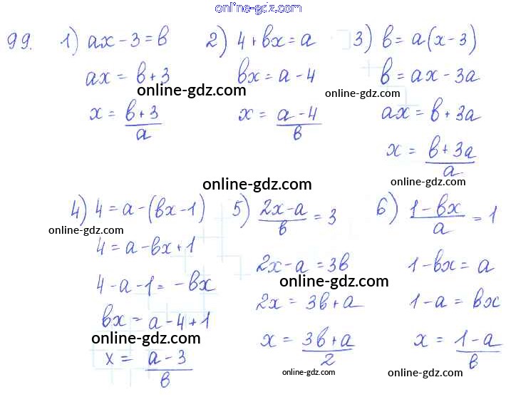 Готовые домашние задания по Алгебре за 7 класс Учебник Алимов, Колягин 2014 - §7. Решение уравнений с одним неизвестным, сводящихся к линейным Глава 2. Уравнения с одним неизвестным 99