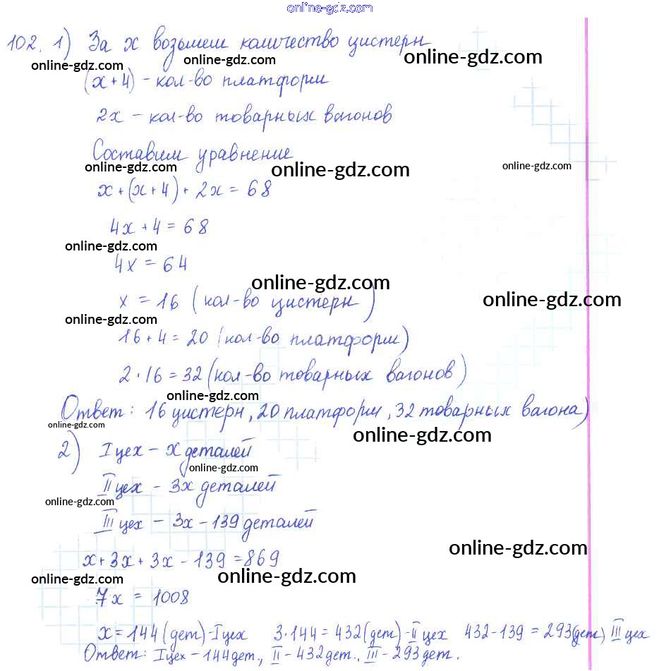 Готовые домашние задания по Алгебре за 7 класс Учебник Алимов, Колягин 2014 - §8. Решение задач с помощью уравнений Глава 2. Уравнения с одним неизвестным 102