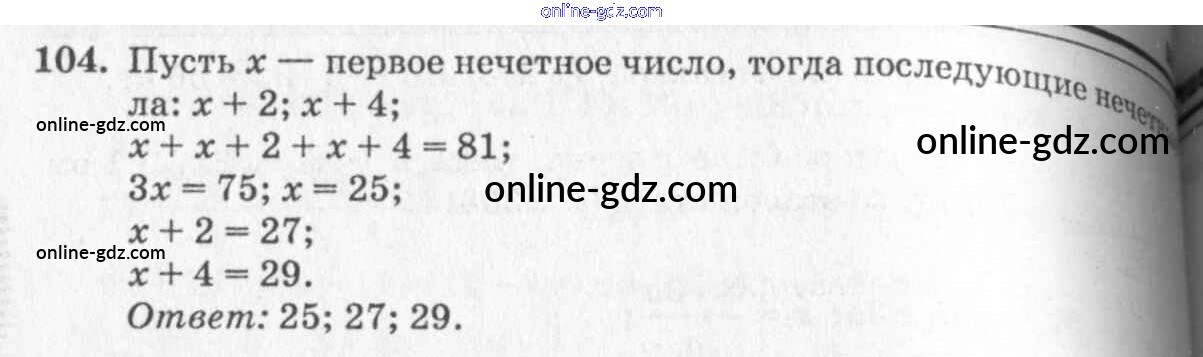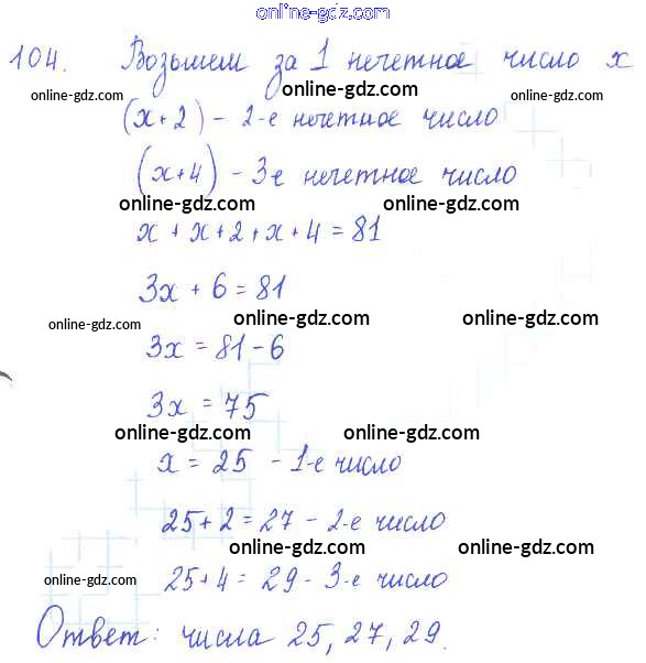 Готовые домашние задания по Алгебре за 7 класс Учебник Алимов, Колягин 2014 - §8. Решение задач с помощью уравнений Глава 2. Уравнения с одним неизвестным 104