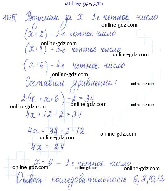 Готовые домашние задания по Алгебре за 7 класс Учебник Алимов, Колягин 2014 - §8. Решение задач с помощью уравнений Глава 2. Уравнения с одним неизвестным 105