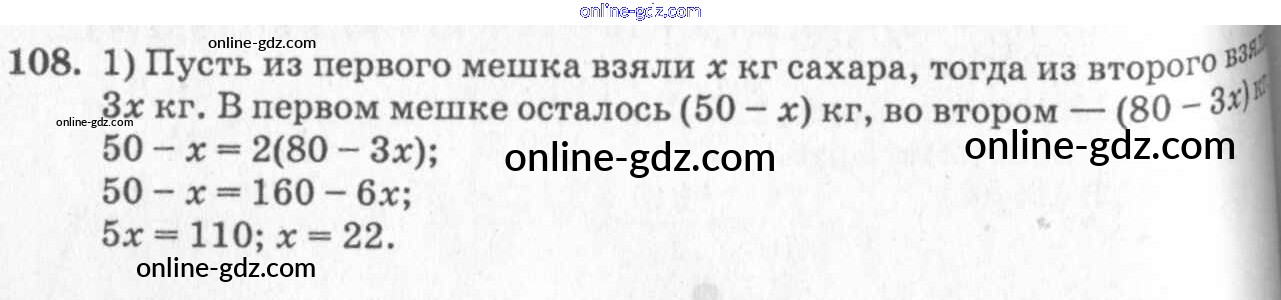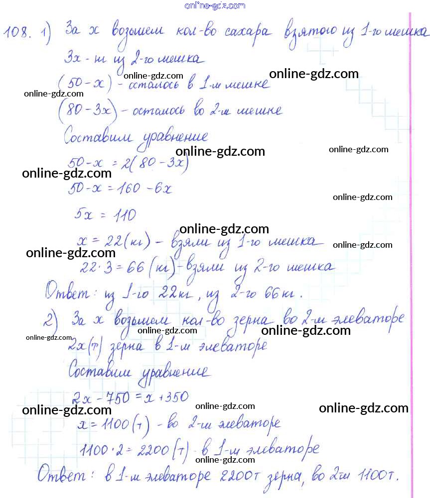 Готовые домашние задания по Алгебре за 7 класс Учебник Алимов, Колягин 2014 - §8. Решение задач с помощью уравнений Глава 2. Уравнения с одним неизвестным 108