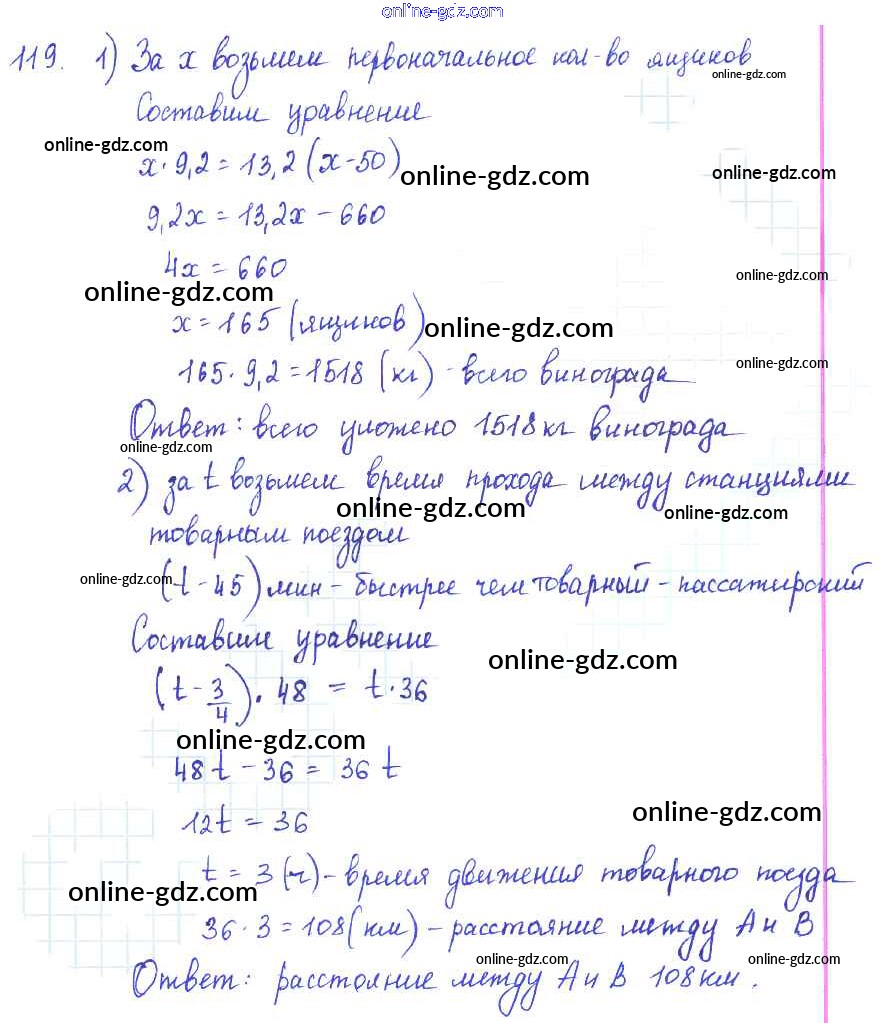 Готовые домашние задания по Алгебре за 7 класс Учебник Алимов, Колягин 2014 - Упражнения к главе 2 Глава 2. Уравнения с одним неизвестным 119
