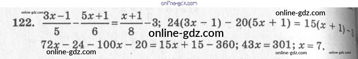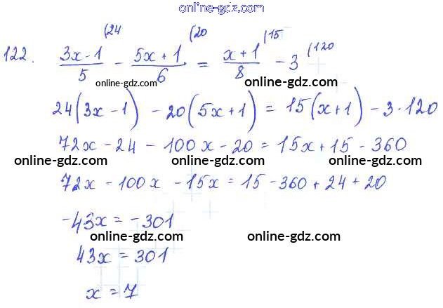 Готовые домашние задания по Алгебре за 7 класс Учебник Алимов, Колягин 2014 - Упражнения к главе 2 Глава 2. Уравнения с одним неизвестным 122