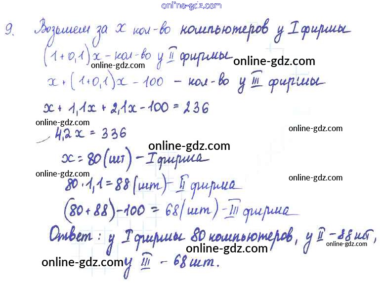 Готовые домашние задания по Алгебре за 7 класс Учебник Алимов, Колягин 2014 - Практические и прикладные задачи Глава 2. Уравнения с одним неизвестным 9